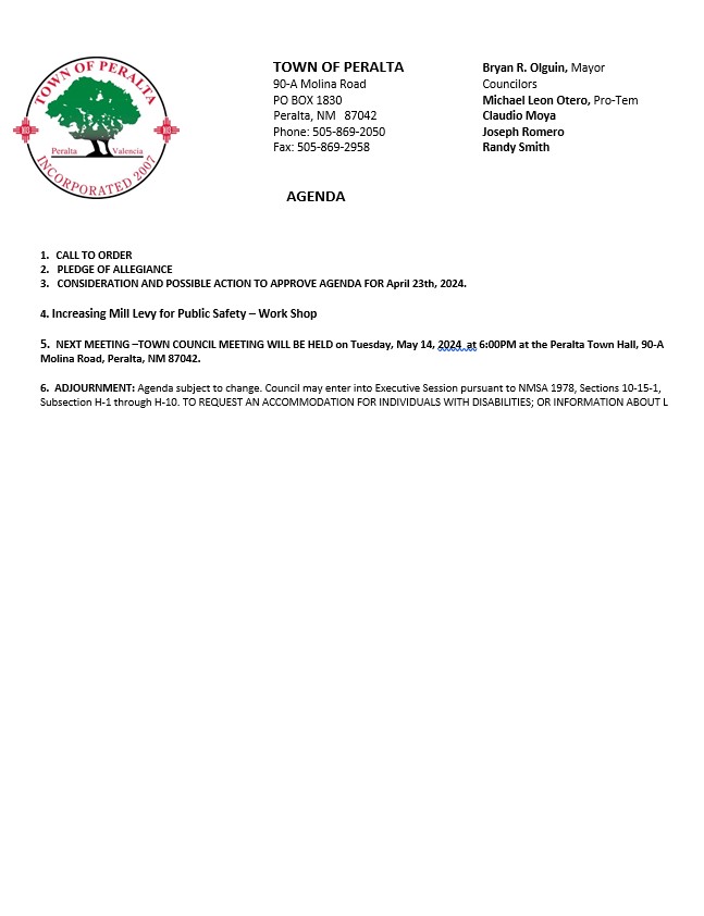 COUNCIL MEETING AGENDA FOR TUESDAY 4/23/24