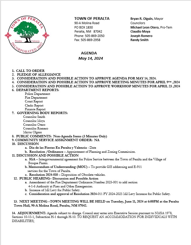 Council Meeting Agenda 5/14/2024