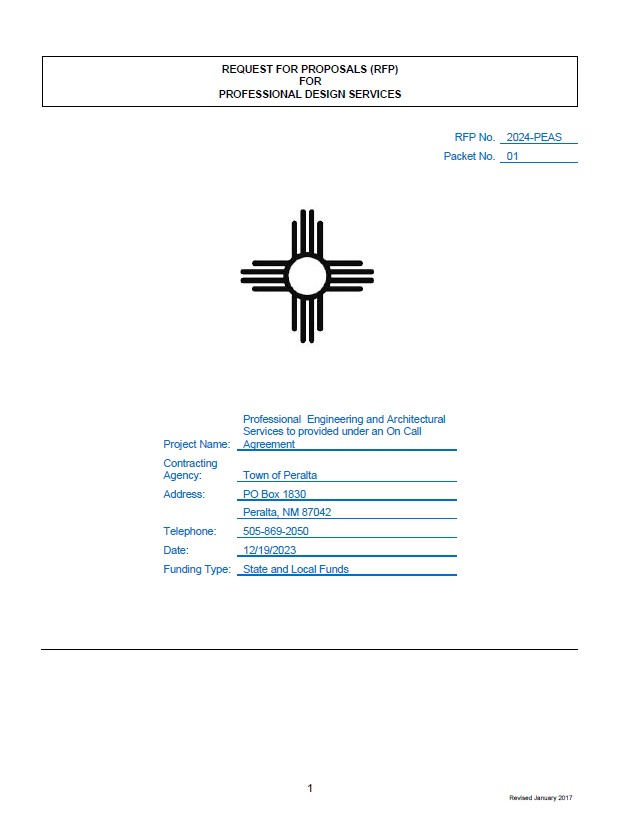 Title is Professional Engineering and Architectural Services RFPID 2024-PEAS.